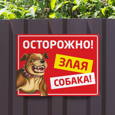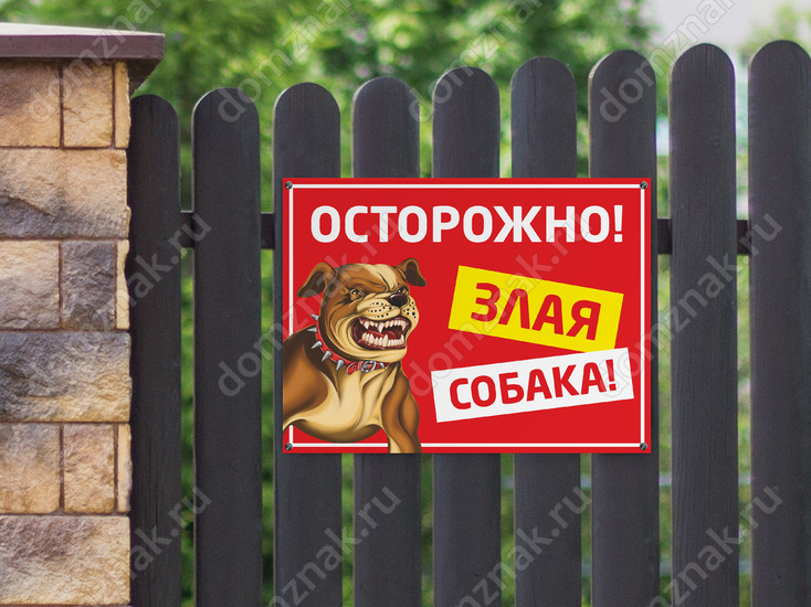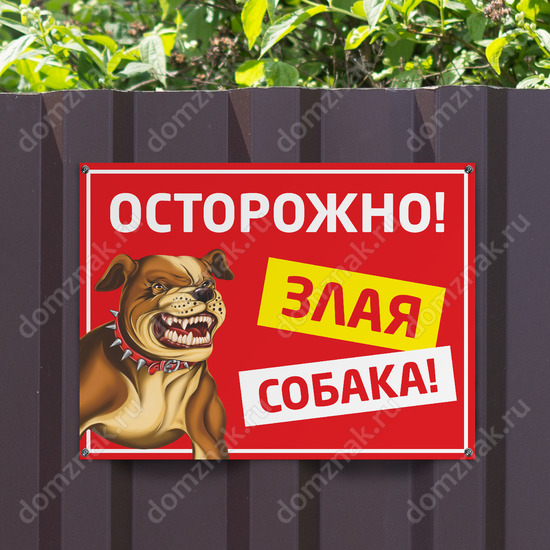 Ярко-красная красивая табличка «Осторожно, злая собака» привлечет внимание всех, кто будет проходить мимо вашего двора. Она предупредит об опасности в виде злой собаки, которая готова броситься на любого непрошеного гостя. Изображение клыкастого охранника в сочетании с контрастной надписью не дадут сомневаться в правдивости предупреждающего послания.