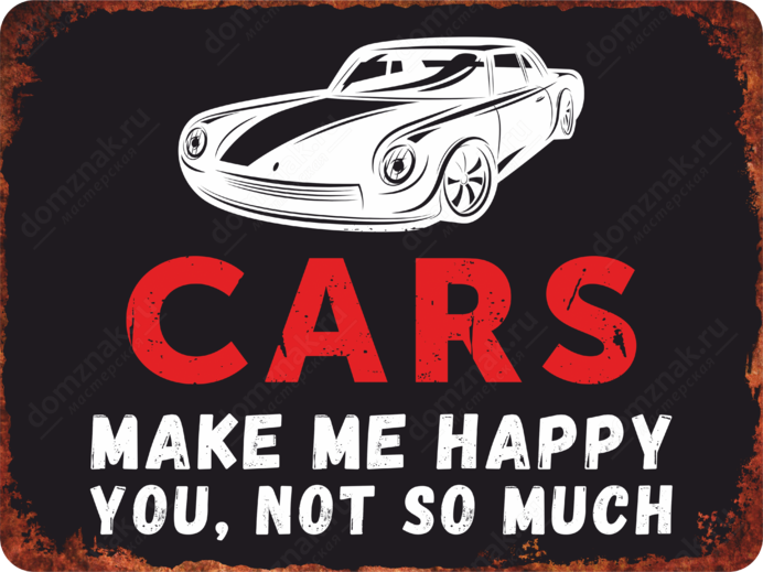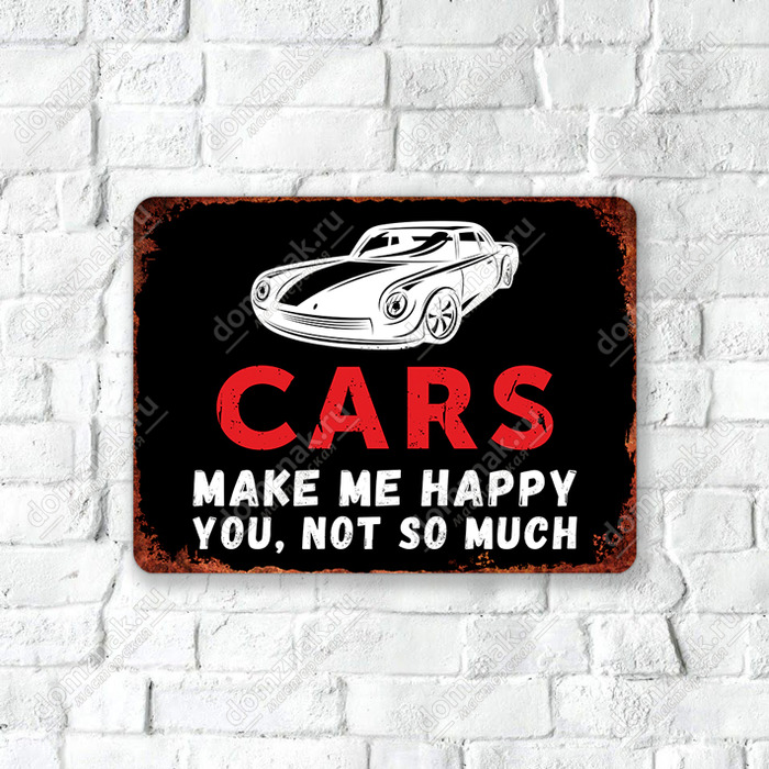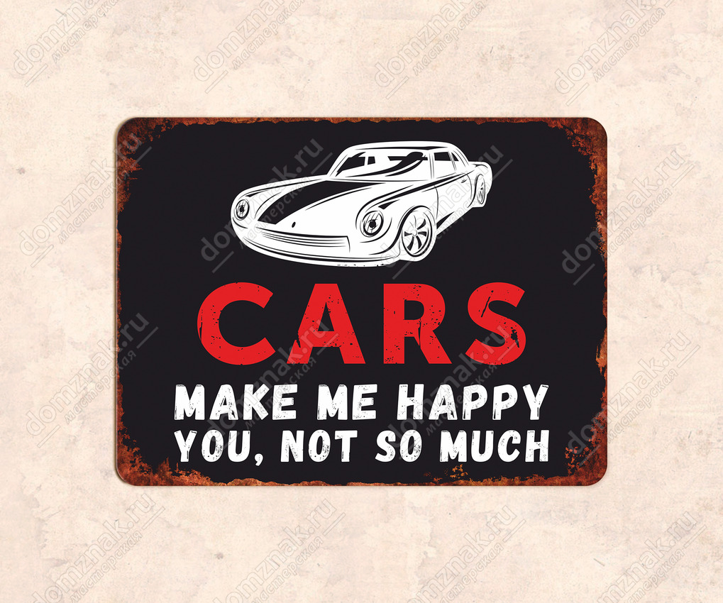Табличка «Cars make my happy. You, not so much» изготовлена из пластика ПВХ, толщиной 4 мм. Изображение наносится по технологии УФ-печати. Табличка предназначена для использования как в помещении, так и на улице.