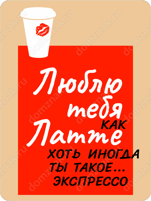 Табличка «Люблю тебя как латте хоть иногда ты такое экспрессо»