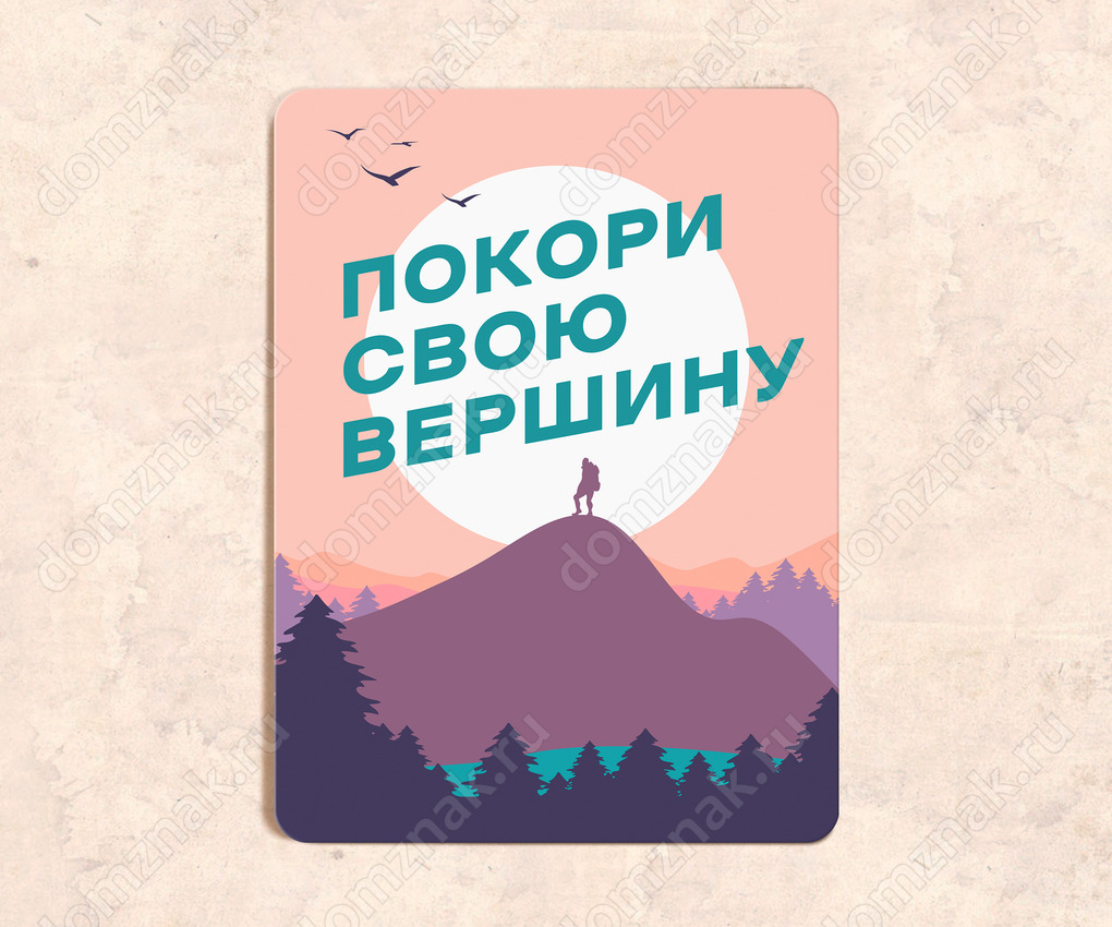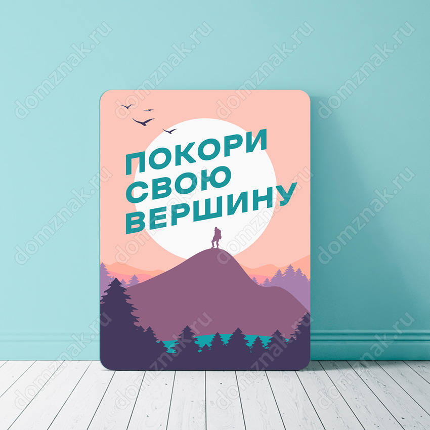 Табличка «Покори свою вершину» изготовлена из пластика ПВХ, толщиной 4 мм. Изображение наносится по технологии УФ-печати. Табличка предназначена для использования как в помещении, так и на улице.
